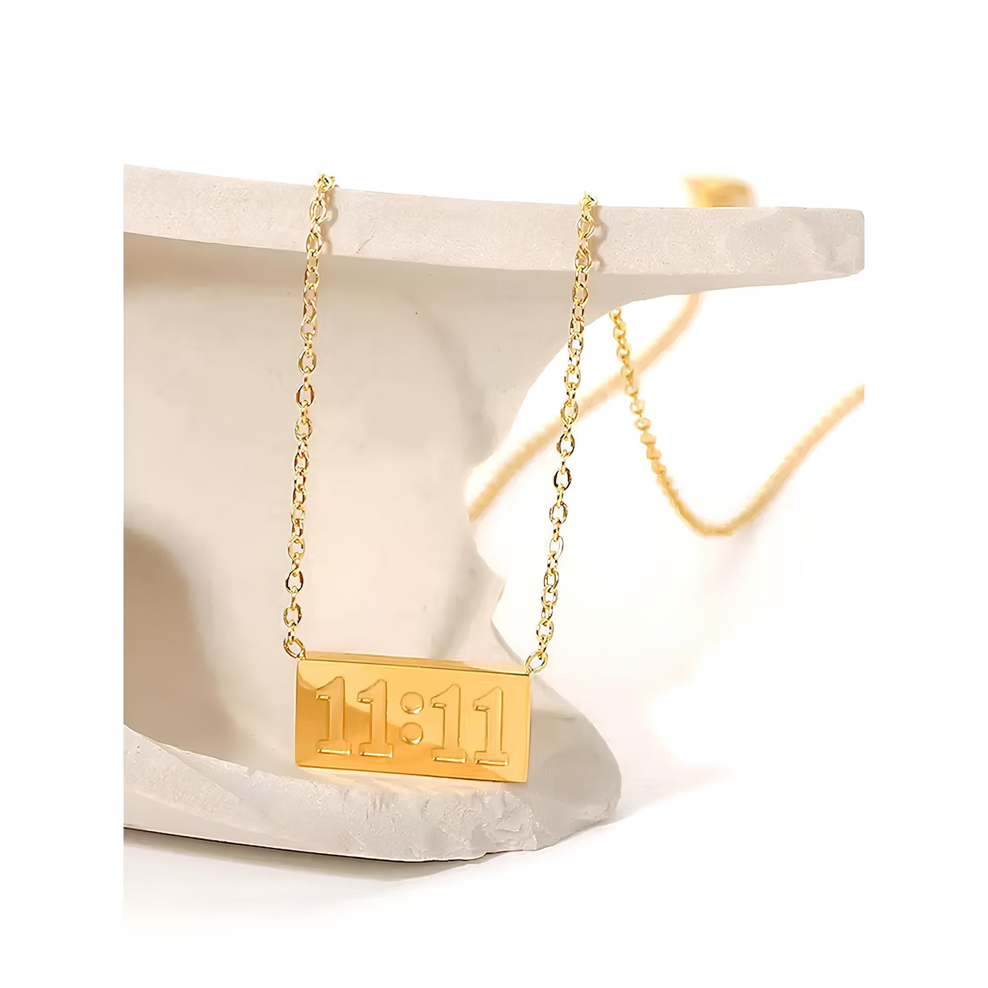 Embrace spiritual synchronicity with the Multiwa 11:11 Angel Number Necklace, a beautifully crafted piece designed for the modern soul. This elegant necklace features a polished gold-plated rectangular bar pendant meticulously engraved with the powerful '11:11' sequence, a symbol of alignment, new beginnings, and manifestation. The dainty chain is lightweight and comfortable for all-day wear, secured with a reliable lobster clasp and an adjustable extender for the perfect fit. Its minimalist design makes it a versatile accessory, perfect for layering with other pieces or wearing solo as a statement of intention. This spiritual jewellery serves as a daily reminder of your connection to the universe and makes a thoughtful inspirational gift for women and girls on any occasion, encouraging positive energy and good luck.