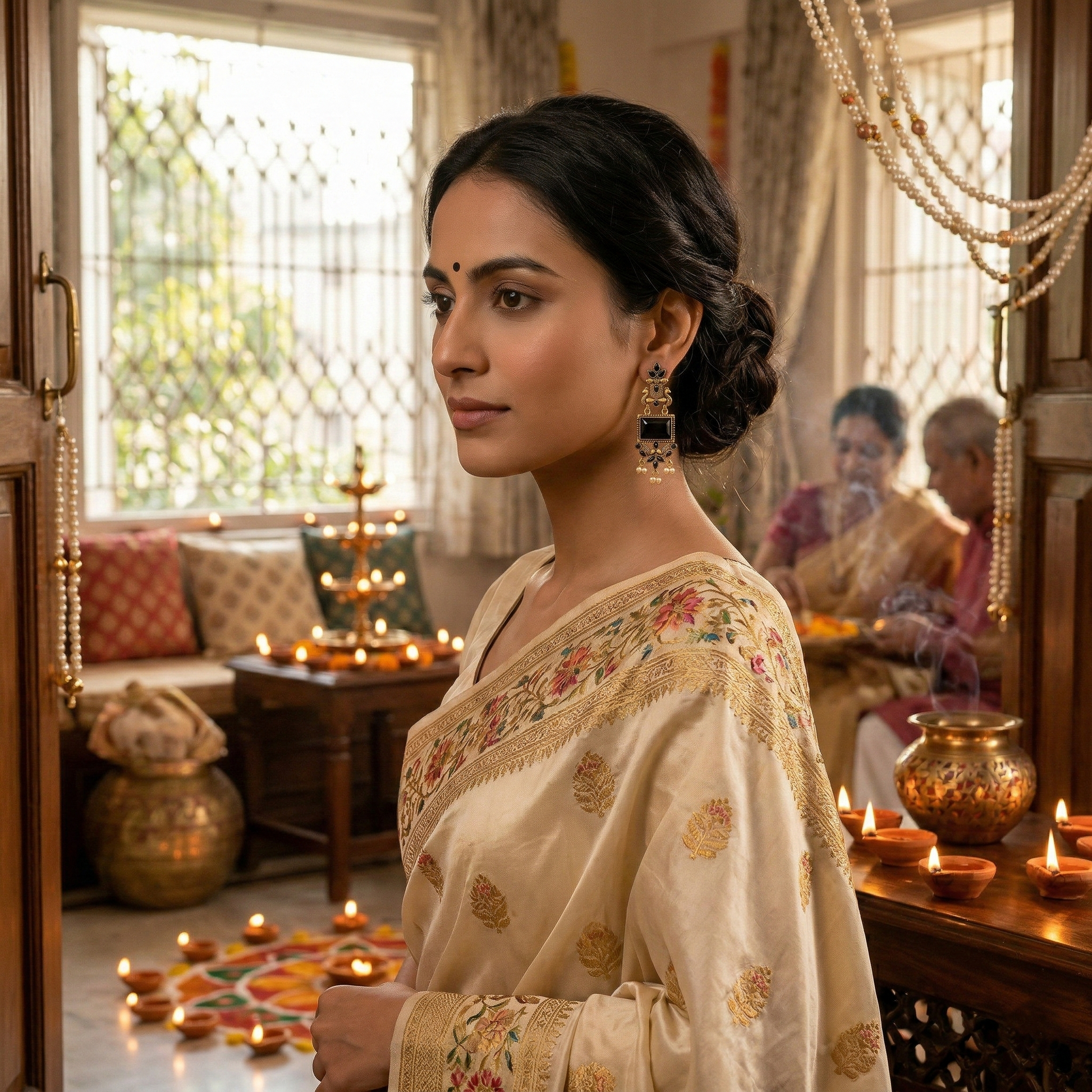 β Elegant pearl danglers for added festive appeal