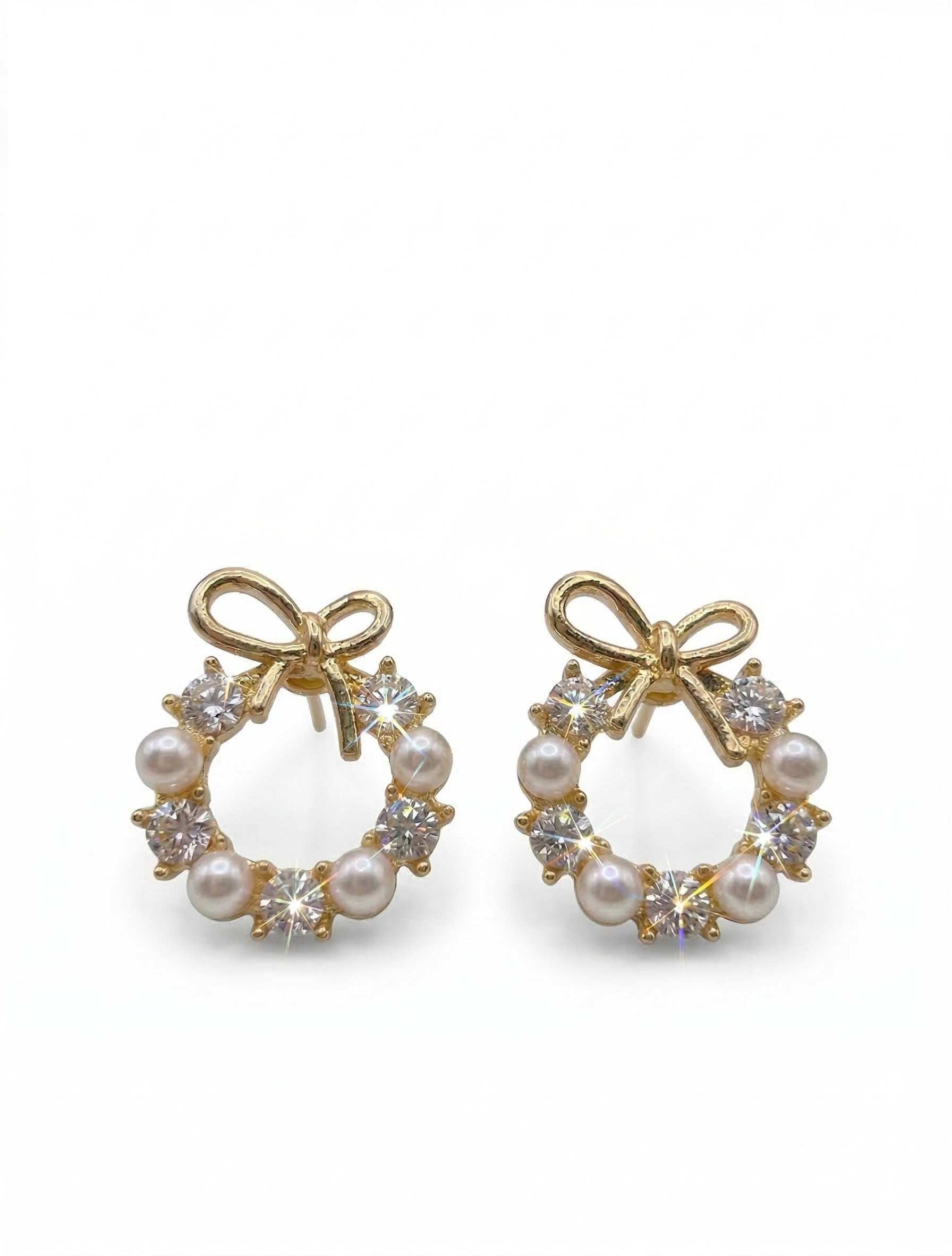 ⢠Gold Plated Bow & Wreath Design Studs