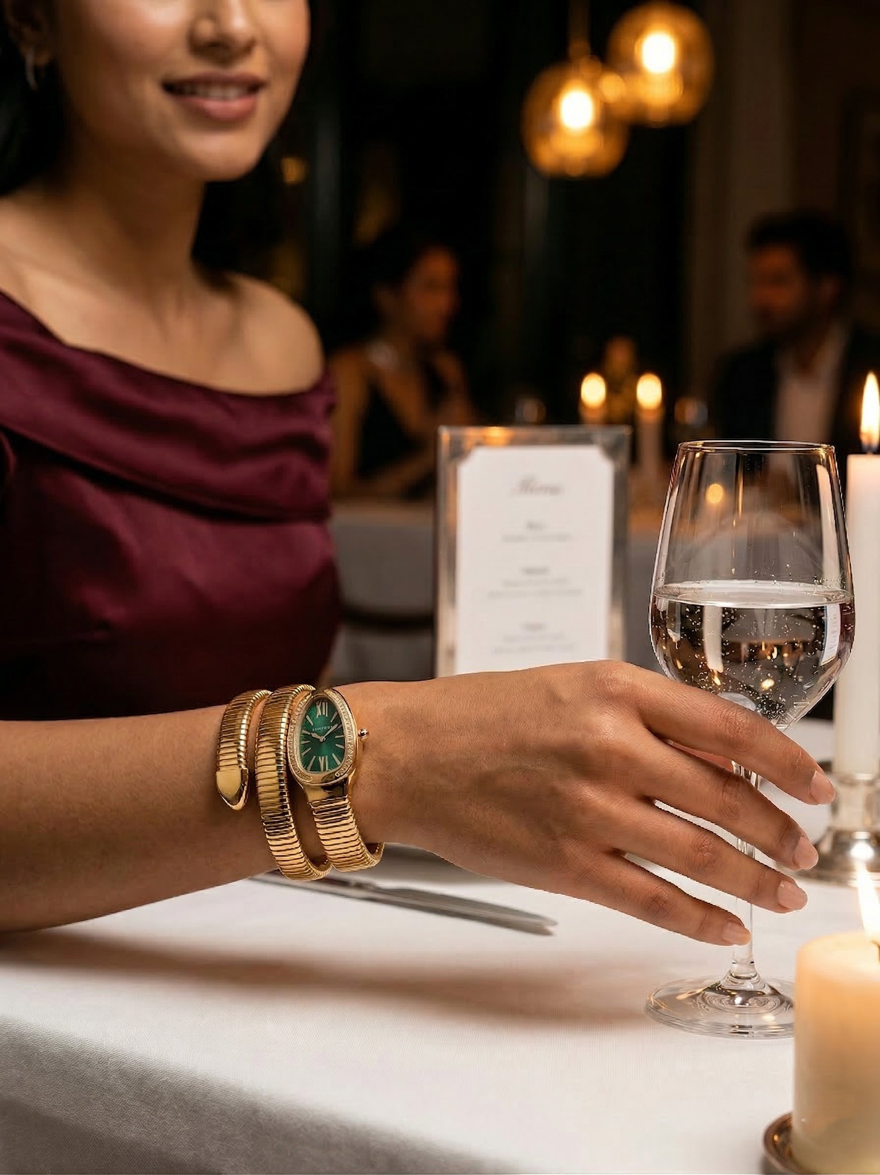 Discover this exquisite gold toned snake wrap watch, a captivating accessory designed for women seeking a distinctive timepiece. Crafted from durable 316L surgical stainless steel with an 18K PVD gold plated finish, this watch offers exceptional anti-tarnish properties, ensuring lasting brilliance. The unique serpentine coil design gracefully wraps around the wrist, providing a comfortable and flexible fit that is one size fits all. Its oval dial features a precise quartz movement for accurate timekeeping, beautifully framed by a crystal-embellished bezel that adds a touch of sophistication. This ladies fashion watch serves as a striking statement wrist accessory, seamlessly blending elegance with modern design.